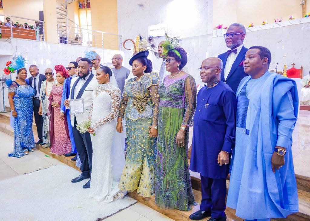 Other dignitaries who attended the church wedding of Dr. Chikamkpa Amaechi and Anita Nwabueze include the former Governor of Kaduna State, Mallam Nasir El-Rufai, National Chairman of the African Democratic Party, Senator David Mark, and former Governor of Plateau State, Senator Solomon Lalong.